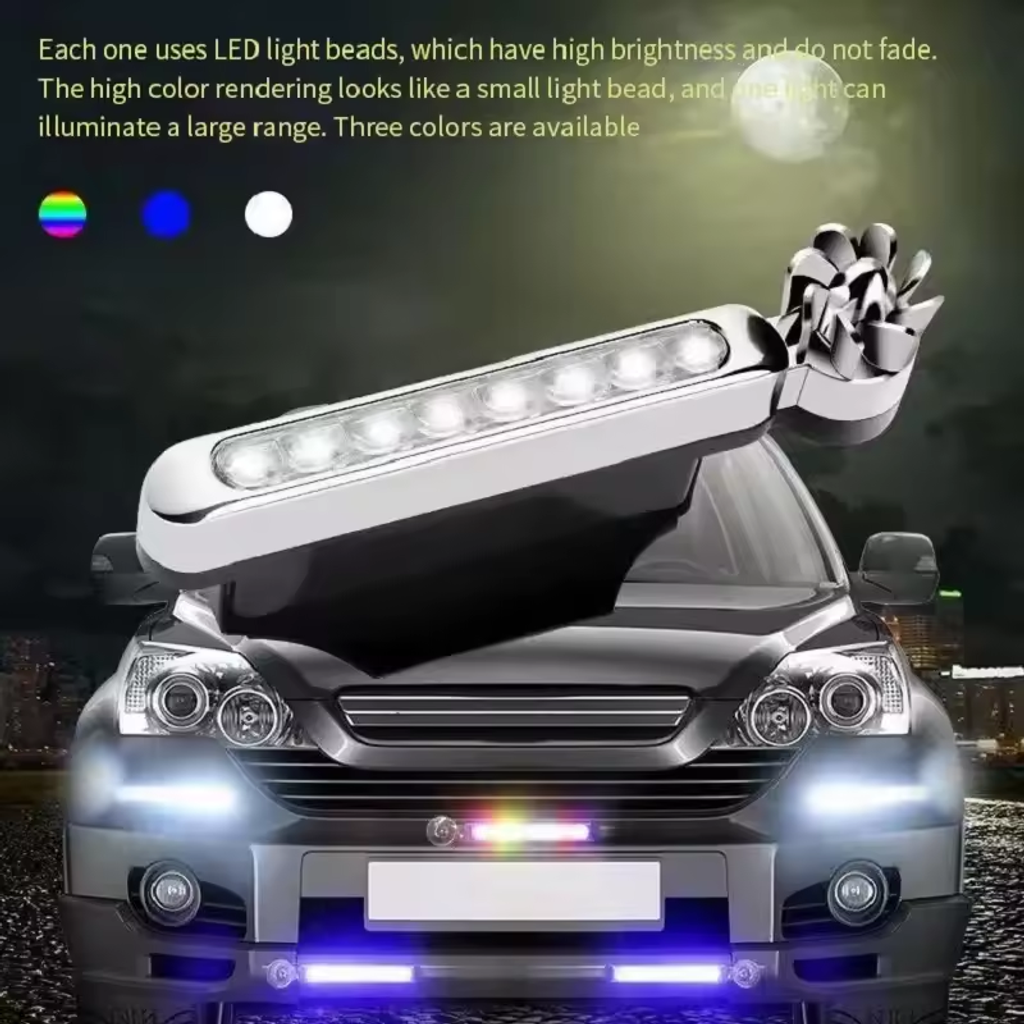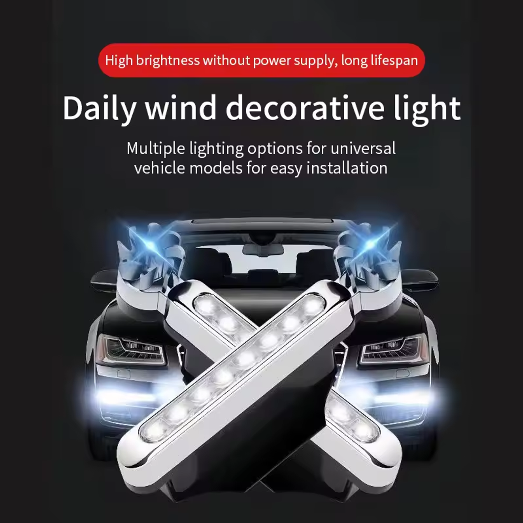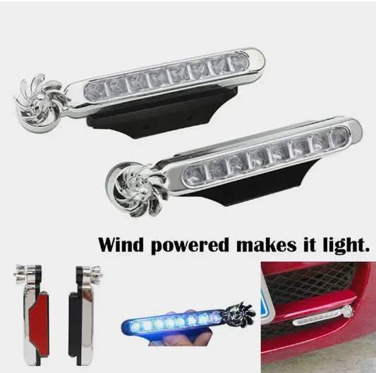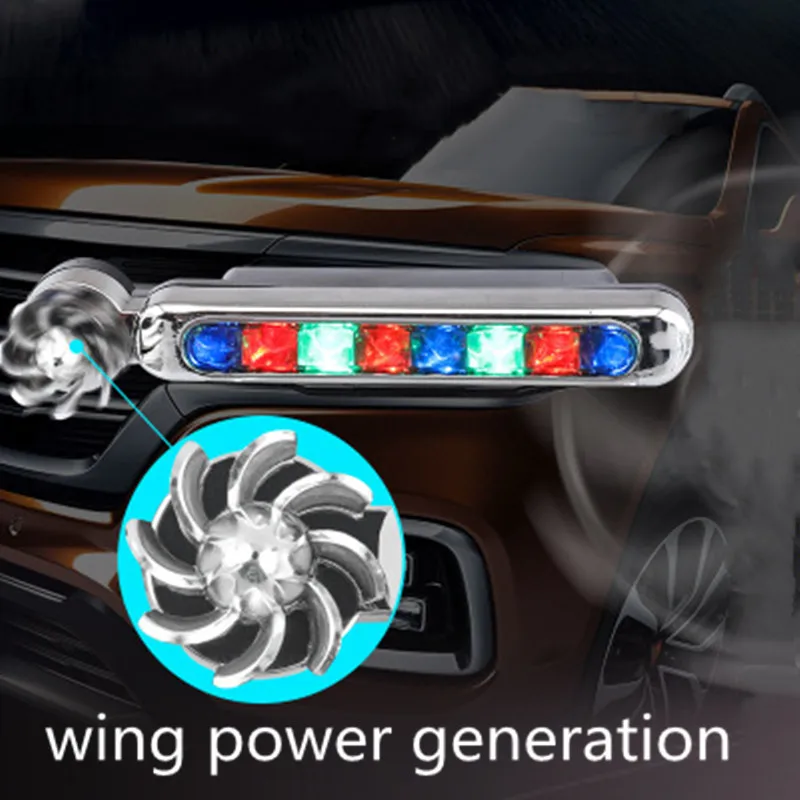 Automotive exterior use (also available for motorcycles, or even bicycles), when the car driving, the air to produce electricity to drive fan products make light, the car driving, the use of wind, wind wheel drive products, the faster the speed, the flash lamp the brighter. Features: 4. Integrated design, small size, compact structure, the appearance of new