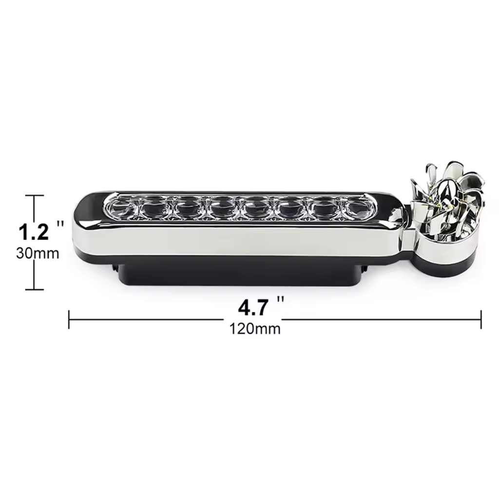 2. The selection of eight high brightness LED, energy-saving, long working life;