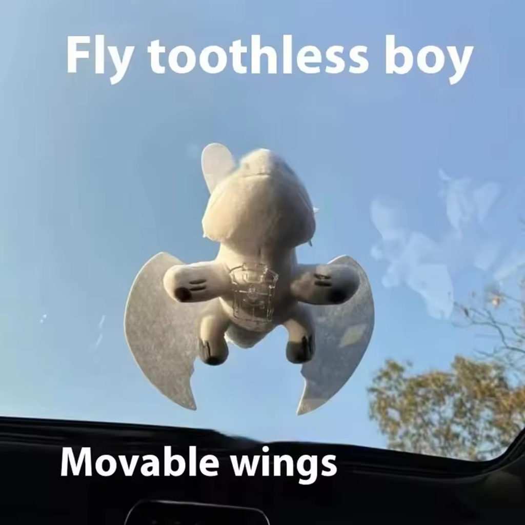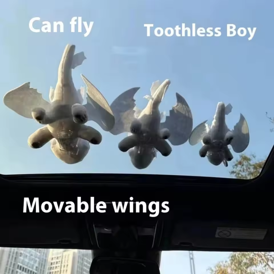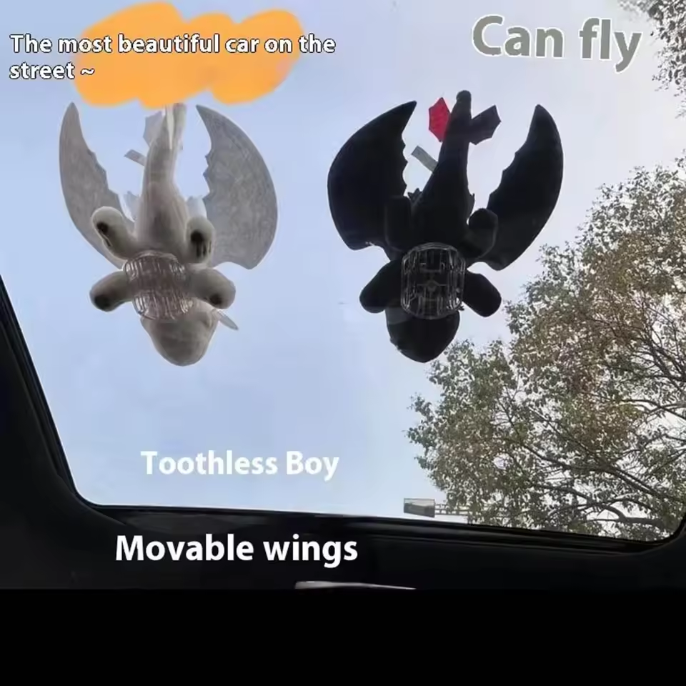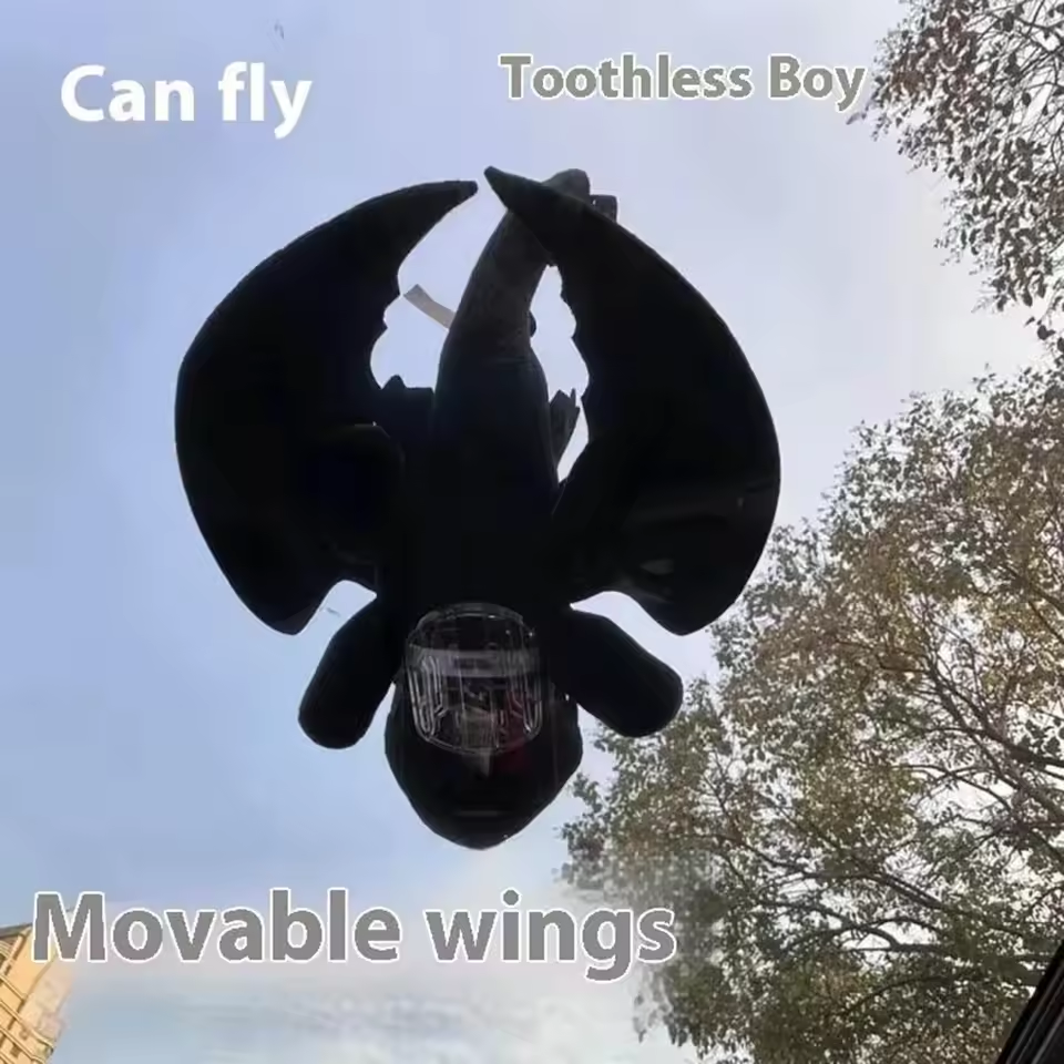 🔥 Cross-border Bestseller 2PCS Flying Dragon Car Roof Dolls Black+White 20cm with Clip Base Wind-Fluttering Wings Car Decor