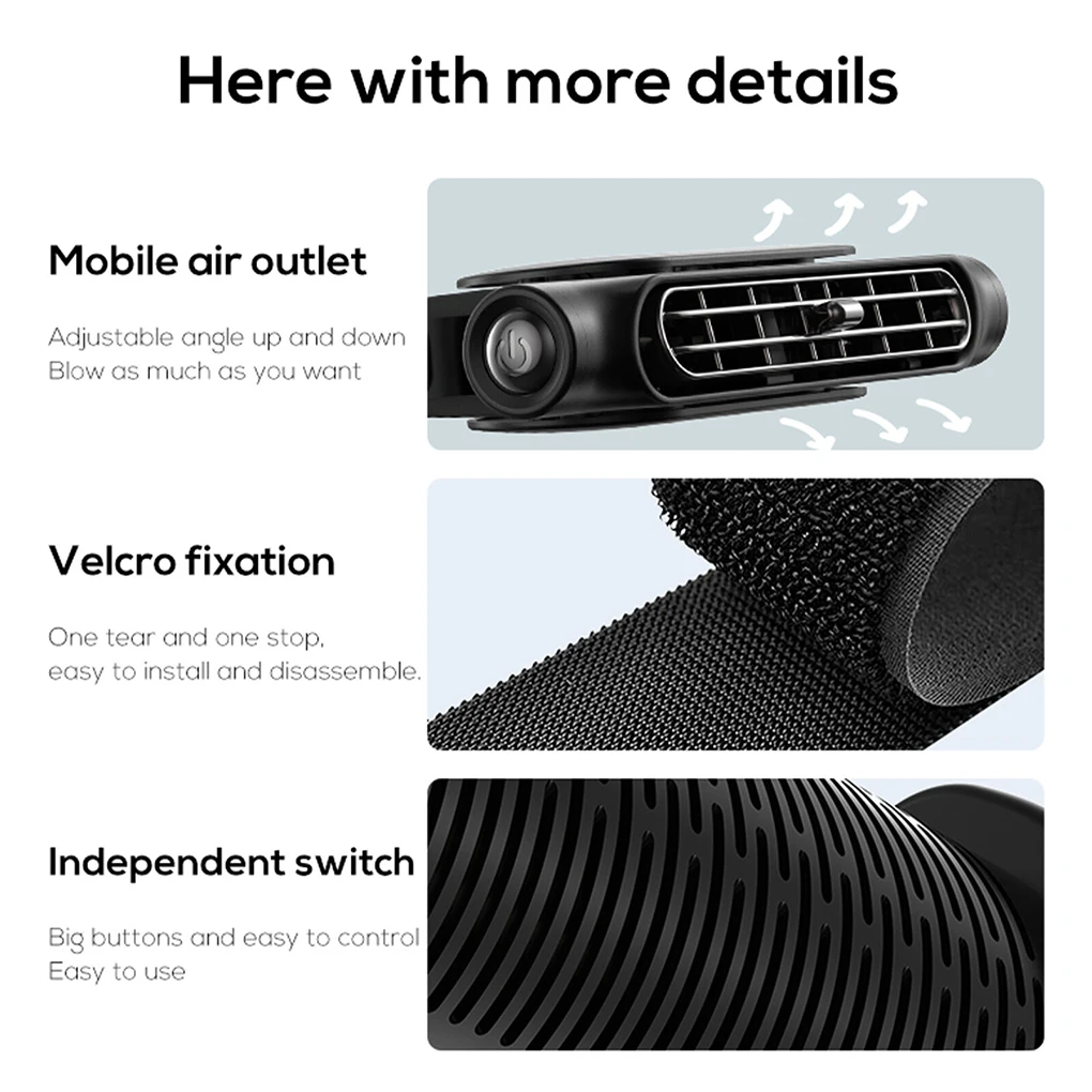 The Backseat Cooling Fan boasts a modern design and provides optimal heat dissipation with its strong wind power. The adjustable settings cater to each passenger's comfort preference. Conveniently powered by a Type-C cord, it's the must-have accessory for any road trip.