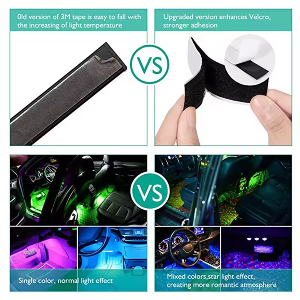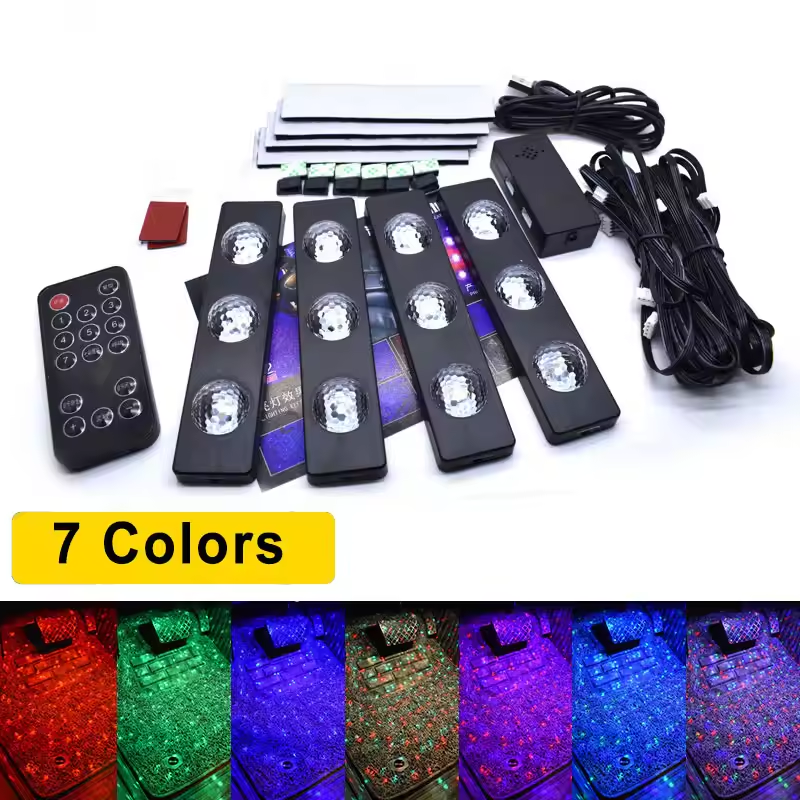 🚗2025 New Arrival Car Interior RGB 7-Color Music Voice Control LED Strip Footwell Light