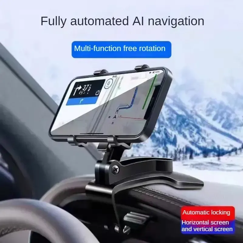 mobile phone bracket for automobile dashboard. Please ensure that your instrument panel has enough edge space to clamp the bracket.