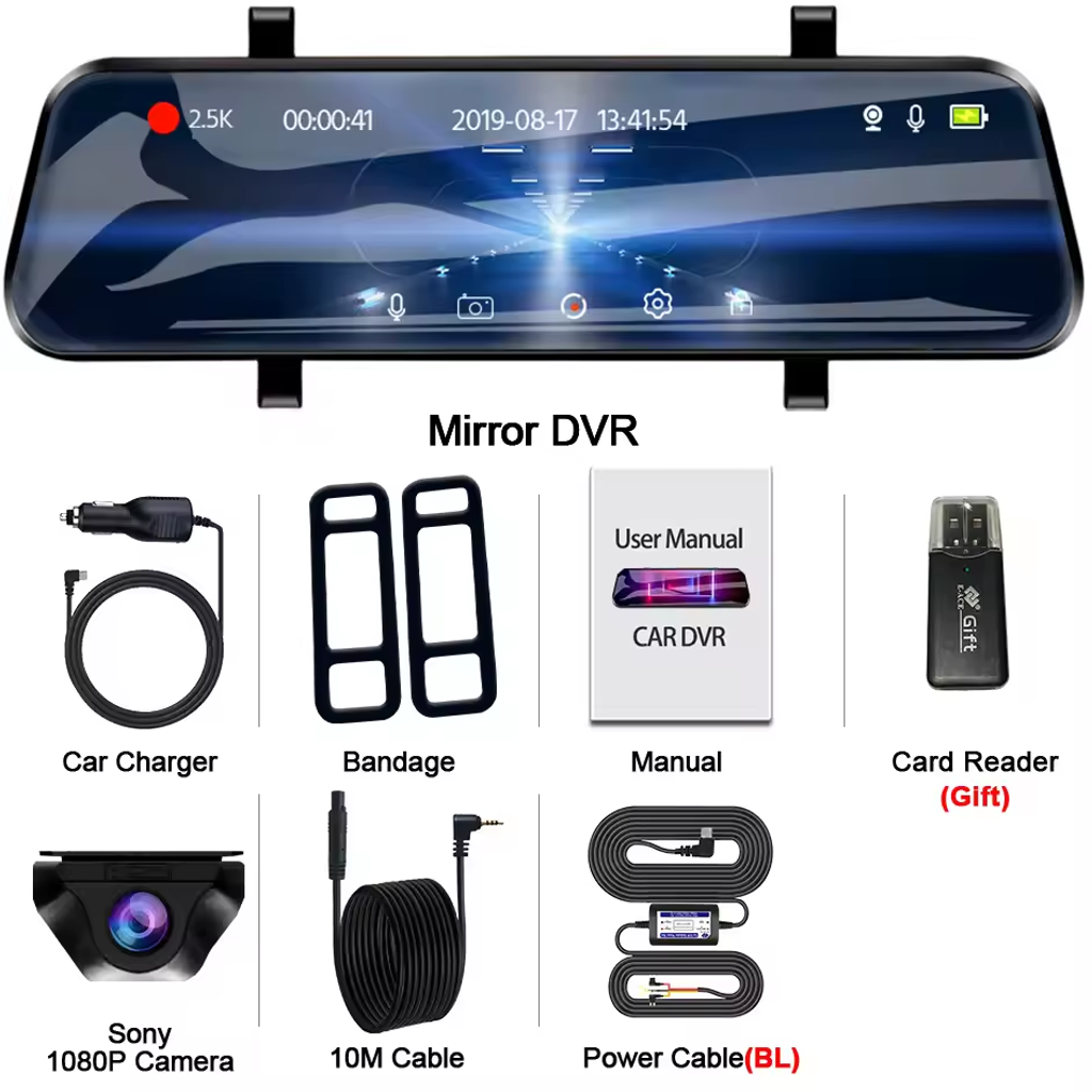 2.5K Mirror Dashcam with 1440P GPS 24H Parking WiFi Recording Black Box