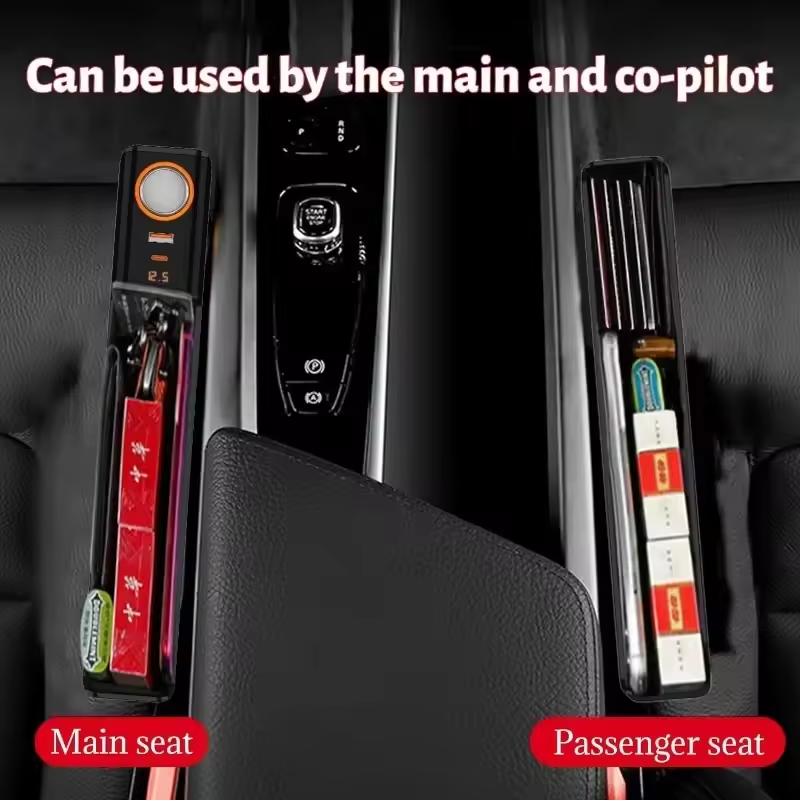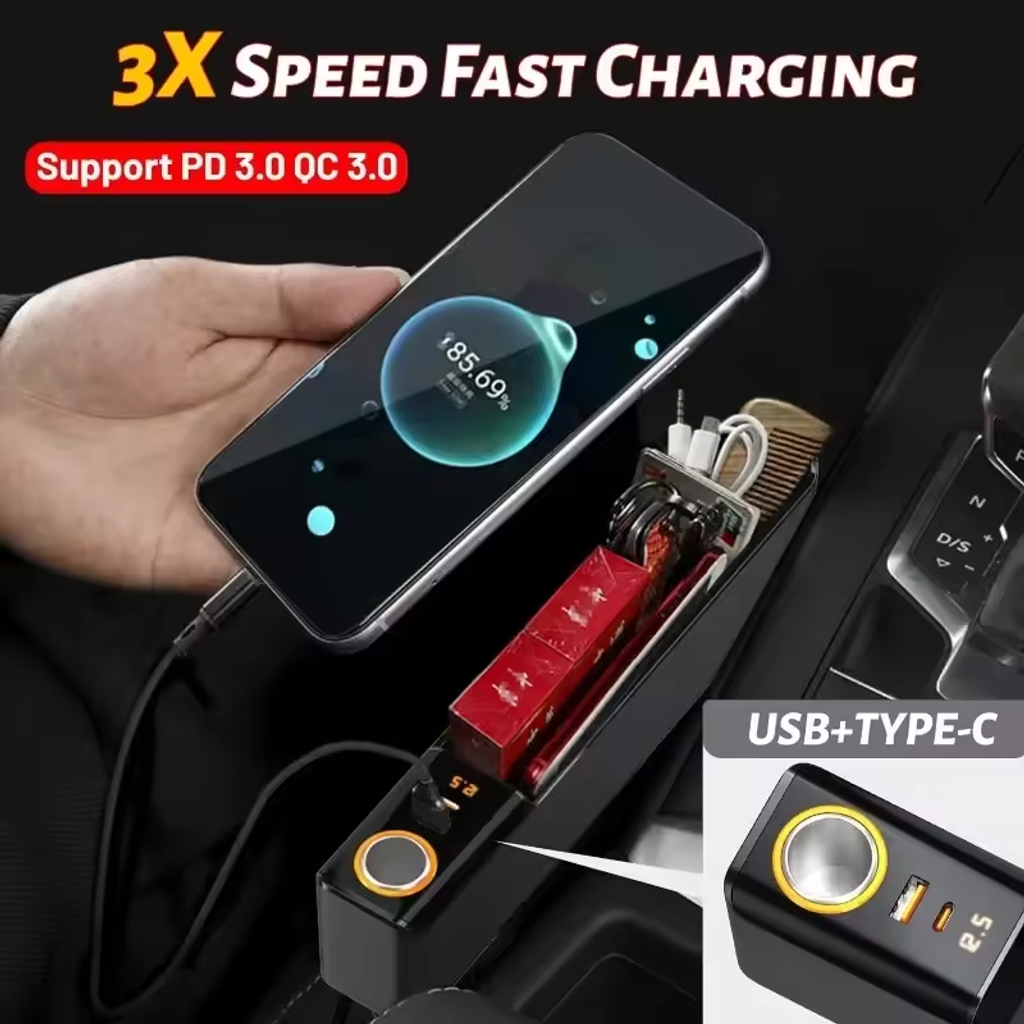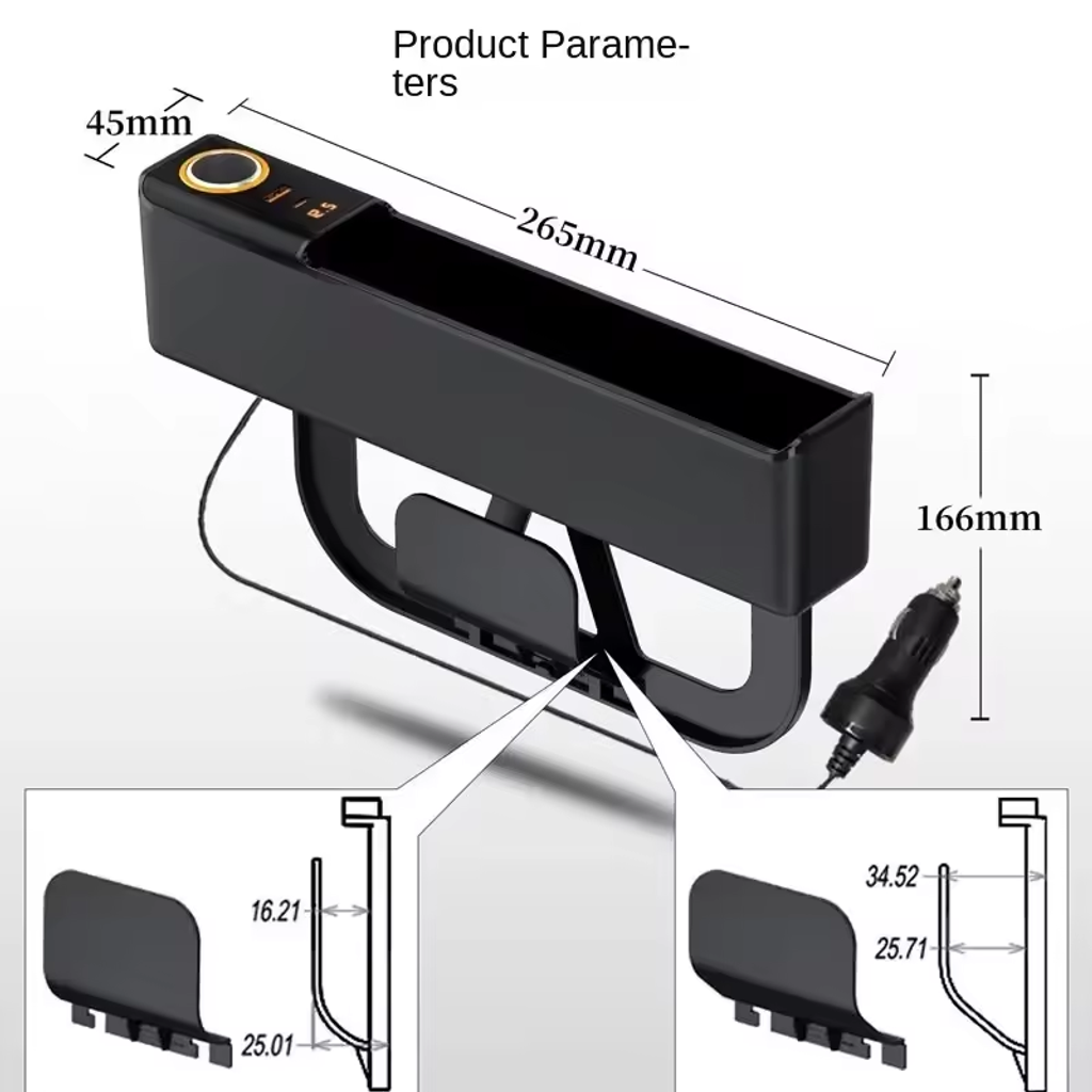 52W Car Seat Gap Filler Organizer with Removable Charging Base Phone Storage Box