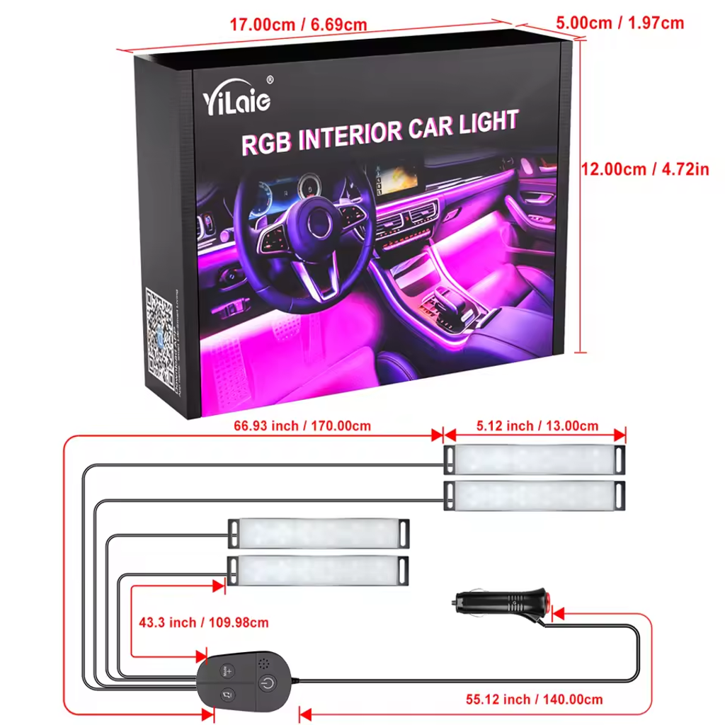 LED Qty: 48pcs(12 leds x 4 strips)