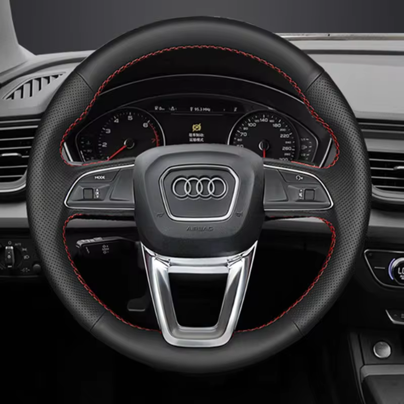 Custom Microfiber Leather Steering Wheel Cover Hand-stitched for Audi A4 Allroad 2017-2018 Q3 2019 Q5 2018-2019