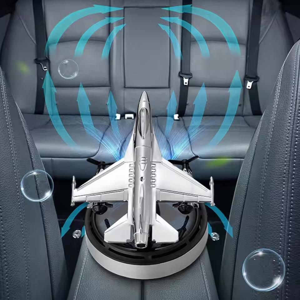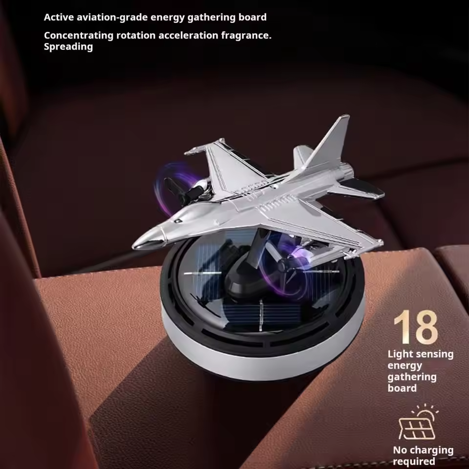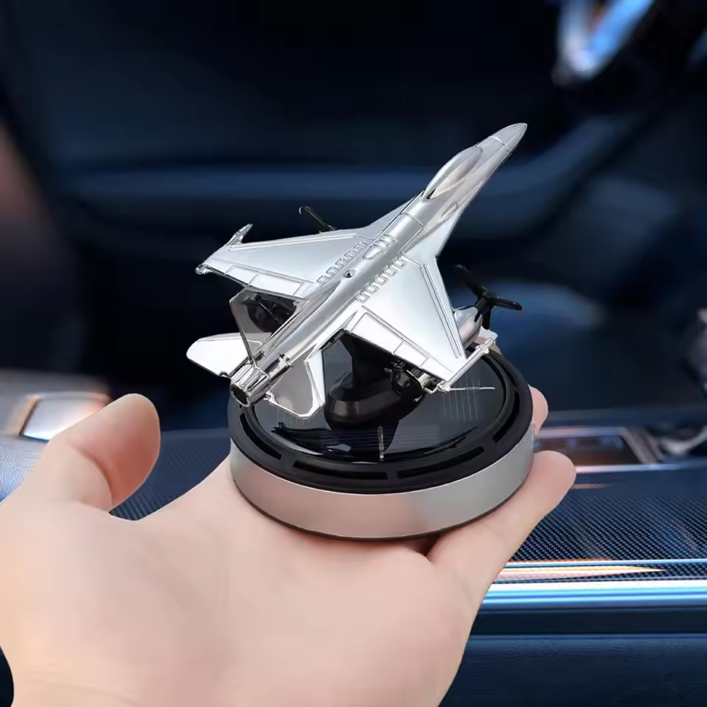Solar-Powered Fighter Jet Air Freshener with 54 Diffusing Holes for Essential Oils - Car Dashboard Decor
